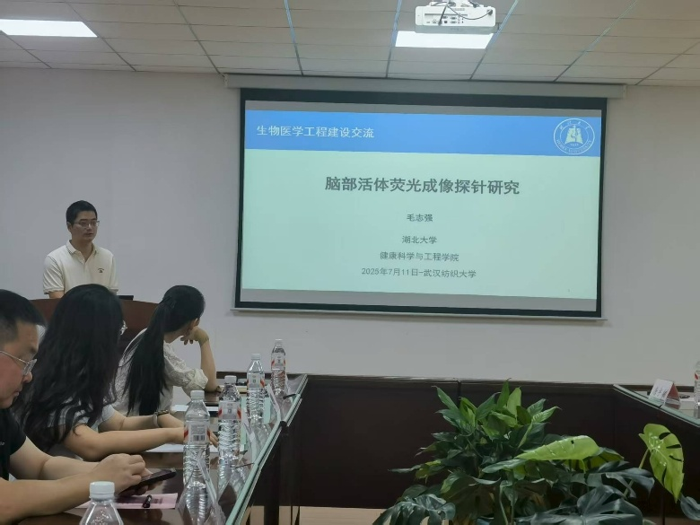 之后,在圆桌论坛上,张兆威院长详细介绍了武汉纺织大学生物工程与健康学院及生物医学工程专业的建设发展历程、学科发展思路及科技成果转化实践。谭雅岚教授“聚焦生物医学工程,诚学共进谋新篇”,探讨了武汉纺织大学生物医学工程专业和学科建设的关系。同时唐宇翔教授和董齐教授分别介绍了创新药研发及临床转化和小龙虾副产物壳聚糖生物应用方面的创新成果。yl6809永利官网集团李贞副院长也以“工程赋能健康,科学引领未来”为主题,详细介绍了yl6809永利集团的发展情况,特别是生物医学工程专业建设的现状及挑战。毛志强教授以“脑部活体荧光成像探针研究”为题,介绍了高灵敏度成像技术在神经科学研究中的应用潜力。双方就生物医学工程学科建设、教学经验、人才培养等方面展开了深入的交流。