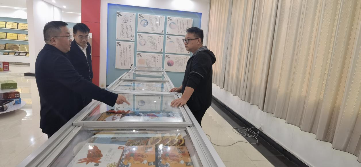吴康兵副院长(左一)和王鹏主任(左二)了解企业产品情况