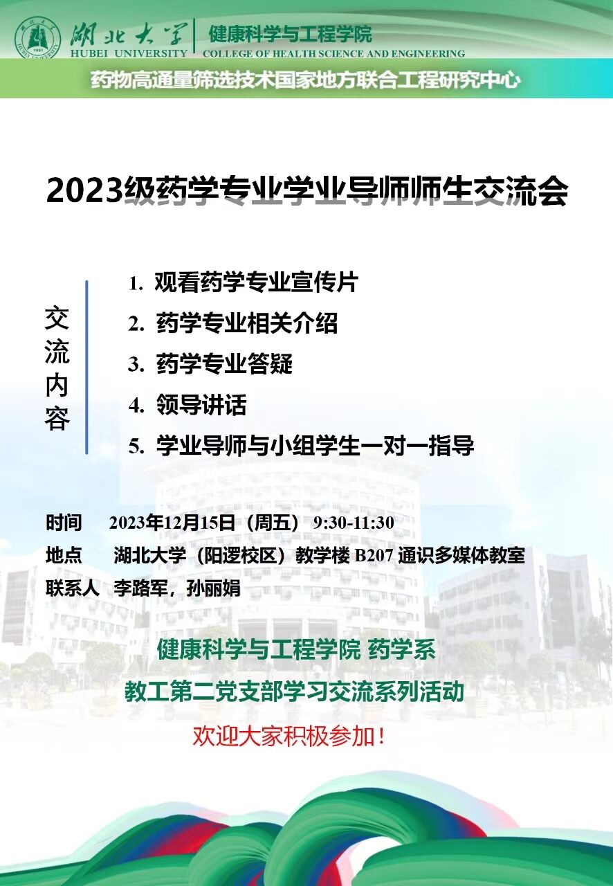 12月15日,2023级药学全体学业导师联合yl6809永利集团教师第二党支部,前往yl6809永利官网集团阳逻校区(通识教育学院)与2023级药学专业学生开展了面对面的师生交流会。