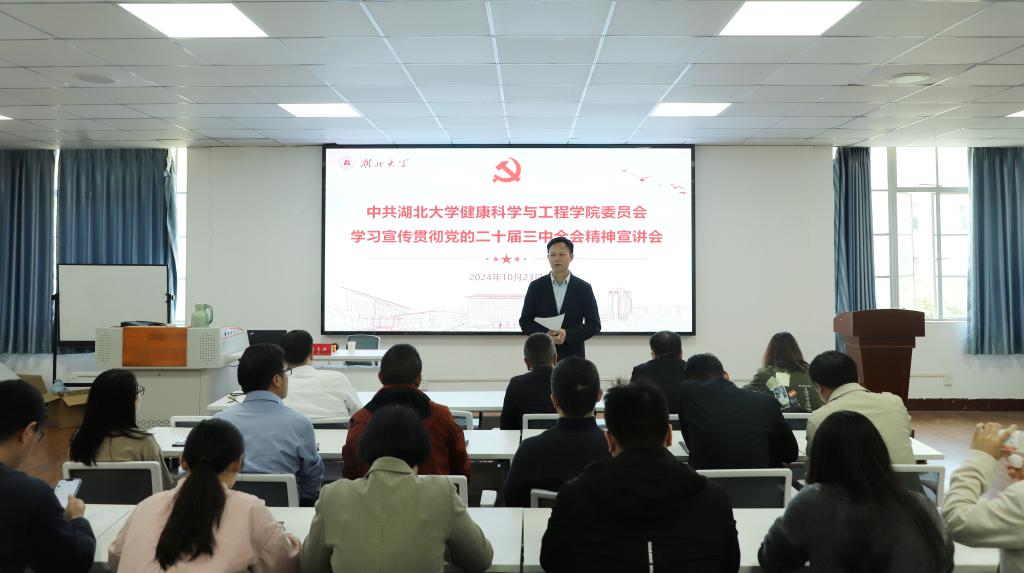 10月23日下午,校党委常委、副校长刘志洪为yl6809永利集团师生宣讲党的二十届三中全会精神。学院全体教职工及学生党员代表参加宣讲会。学院党委书记林二友主持会议。
