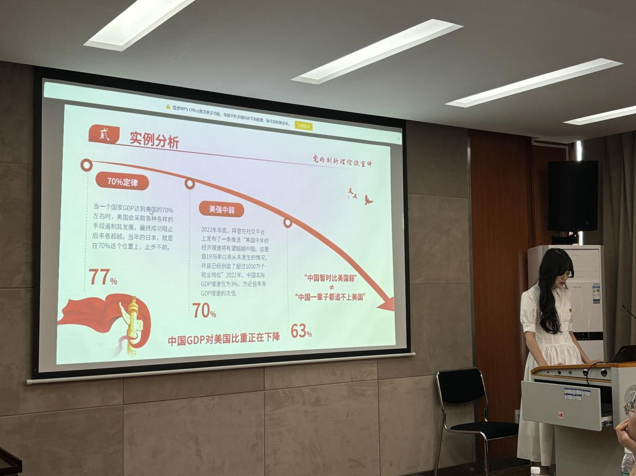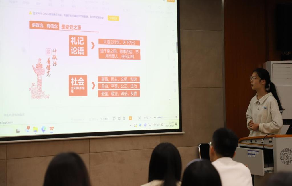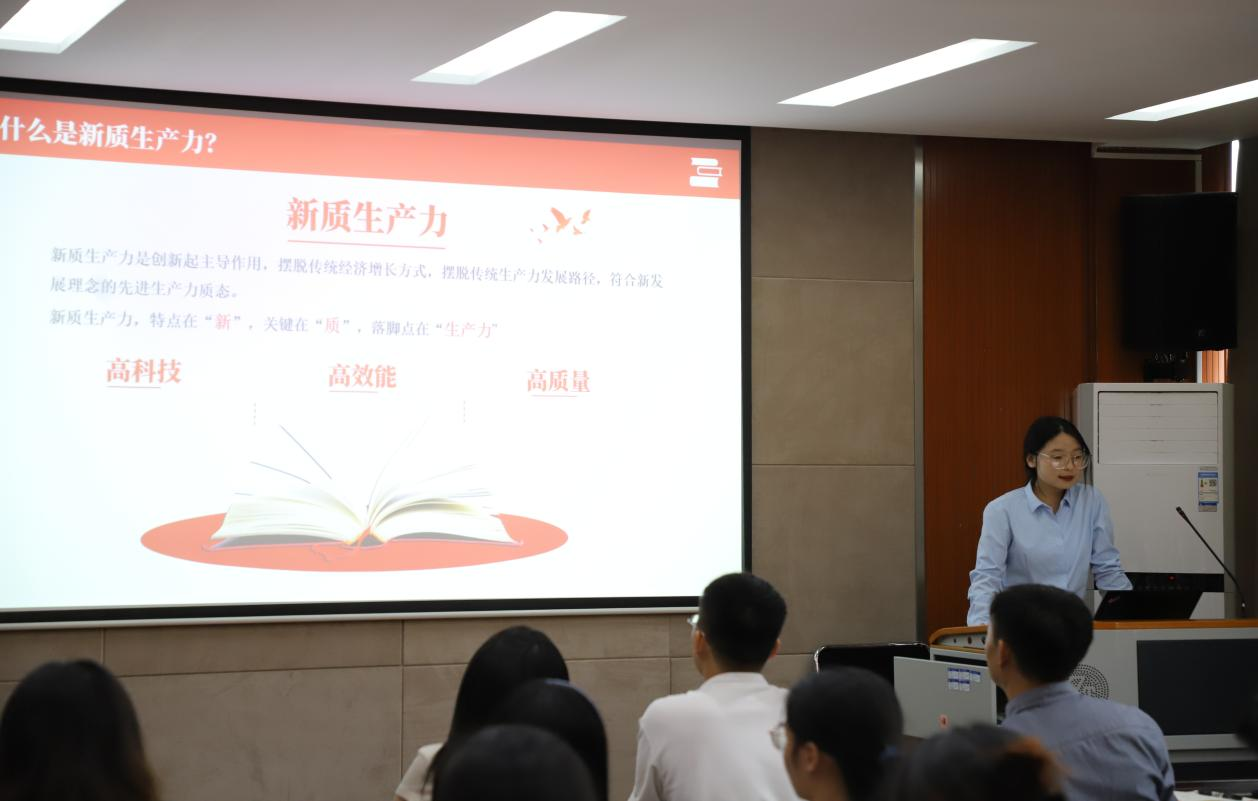 同学们的宣讲主题新颖,内容多样,逻辑清晰。有的从自身专业知识出发,结合新质生产力理解专业使命和时代要求。有的从自己家乡的变化出发,阐述了自己对党对祖国的深情厚谊。有的则从党的经济政策说开来,号召同学们坚守理想、笃行实干,践行青春誓言。